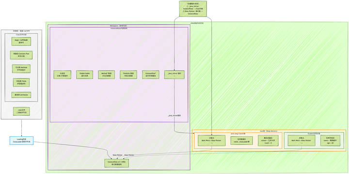 在Java堆内存里生成一个代表这个类的java.lang.Class对象。 这个对象是方法区数据的访问入口。后续代码中 new Student()或者反射Student.class,其实都是通过堆里的这个Class对象去访问方法区里的具体类型信息。