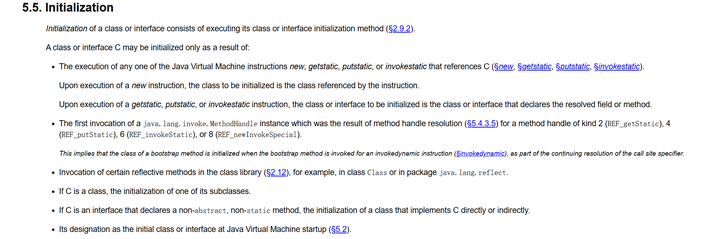 在JVM规范里,有且仅有6种情况会触发初始化。