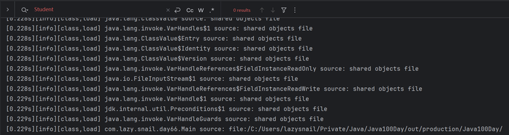 运行后,控制台会输出所有被加载的类信息,直接搜索Student,我们就会发现,Student根本没被加载。