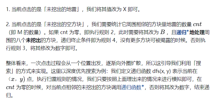 由于题目要求你根据规则来展示执行一次点击操作后游戏面板的变化,所以我们只要明确该扫雷游戏的规则,并用代码模拟出来即可。