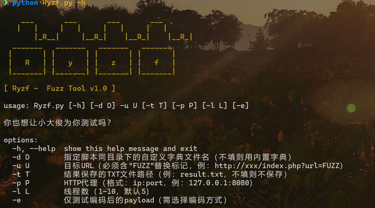 usage: Ryzf.py [-h] [-d D] -u U [-t T] [-p P] [-l L] [-e]