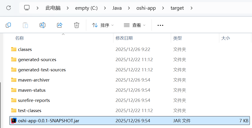 maven package打包,资源管理器中生成一个oshi-app-1.0-SNAPSHOT.jar文件