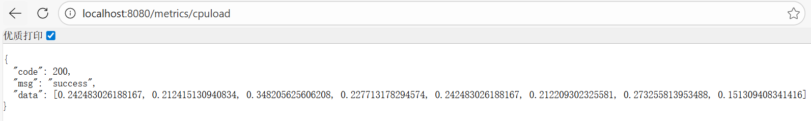 。本机运行testproject工程,看能否访问http://localhost:8080/metrics/cpuload