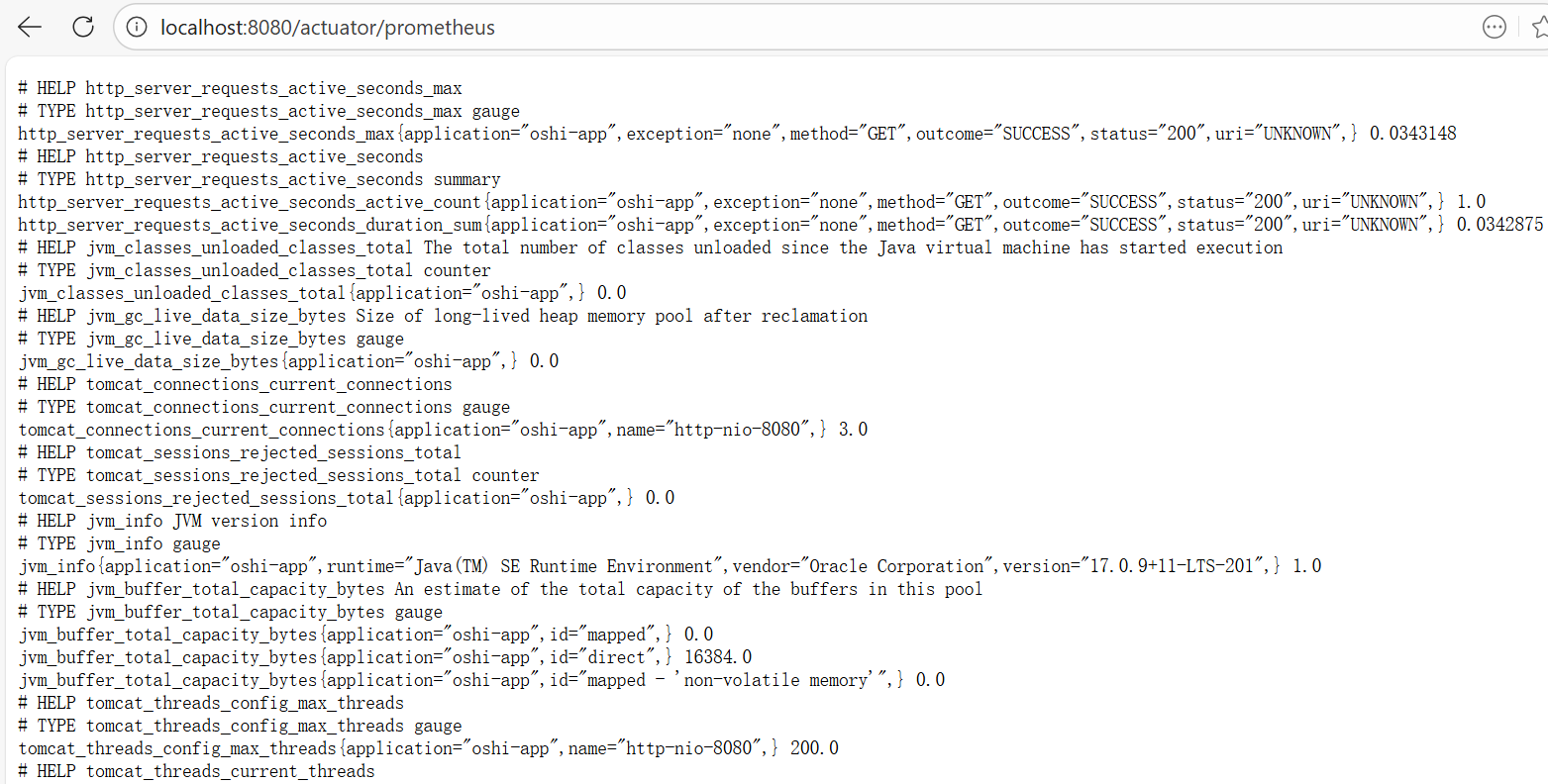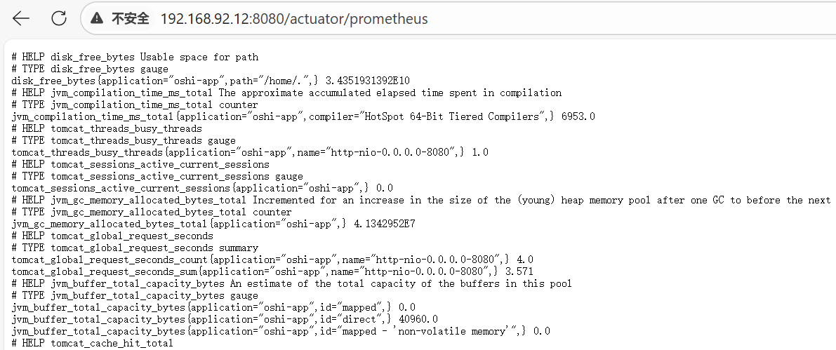 浏览器中访问http://testip:8080/actuator/prometheus,确认可以采集到数据