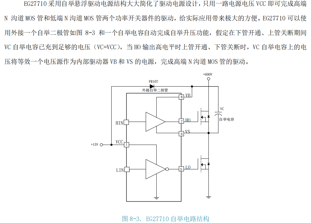- 高端悬浮电源(VB)耐压:600V(绝对最大值)
