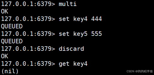 放弃当前事务,此时直接清空事务队列,之前的操作都不会真正执⾏到。