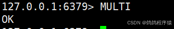 multi开启⼀个事务。执⾏成功返回 OK