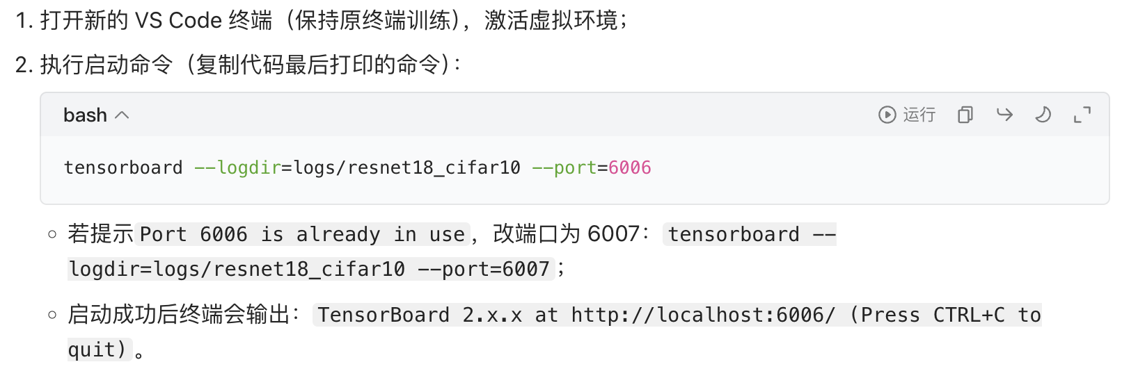- 服务启动:在终端输入命令,让 TensorBoard "读取烹饪日志";