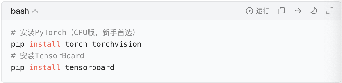- TensorBoard 就是 "厨房仪表盘":把这些数字转换成曲线图、结构图、图片,让你一眼看清 "熬汤进度"。