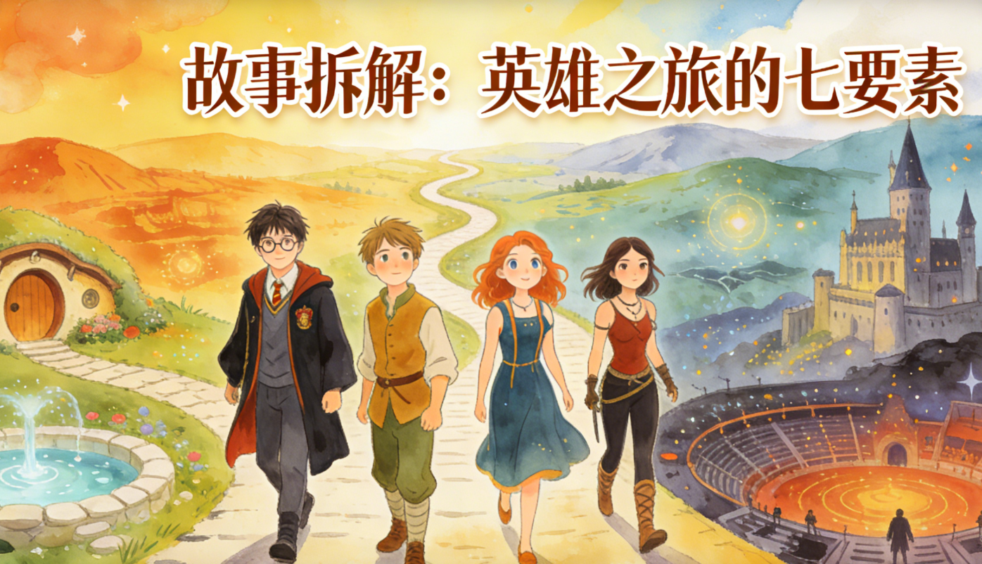 英雄之旅的七要素,不仅是好故事的通用密码,更映射着人类普遍的成长逻辑与心理需求。坎贝尔的十七阶段让我们看到英雄成长的细腻过程,而简化后的七要素则提供了更易操作的实践框架------从平凡的主角出发,因转折事件打破常规,带着明确使命踏上征程,在盟友的支撑下应对挑战,最终实现蜕变,留下惠及他人的遗产。