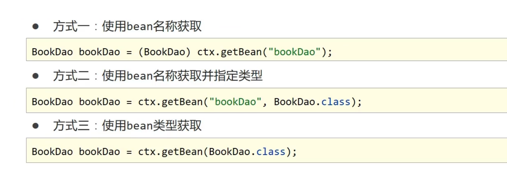 BookDao bookDao=(BookDao) ctx.getBean("bookDao");