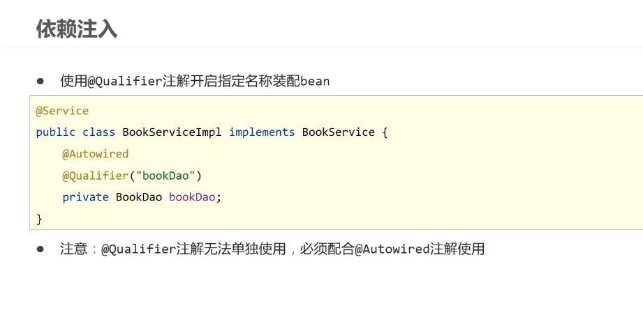 | 设置依赖注入 | setter方法 引用/简单 构造器注入 引用/简单 自动装配 | @Autowired @Qualifier @Value |