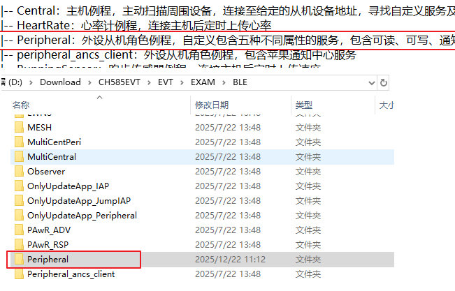 本文基于 CH585 官方 EVT 的从机例程进行说明(只要具备从机角色功能,从机部分应用层代码的框架是一致的。):