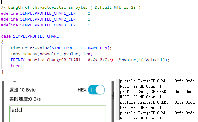 示例只能接收一个字节,是因为设定的特征值 1 的数据长度为 1 :