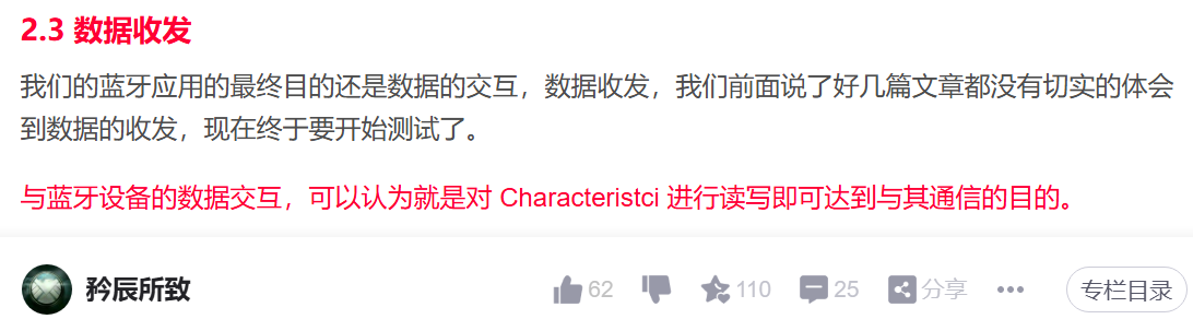 最后我们需要讲一下数据收发,我在很早的蓝牙博客中就说过,即便我们搞不清什么协议层面 GATT ,GAP,这的那的,也要记住一个点, 蓝牙数据收发,就是对蓝牙服务中的特征值的读写。