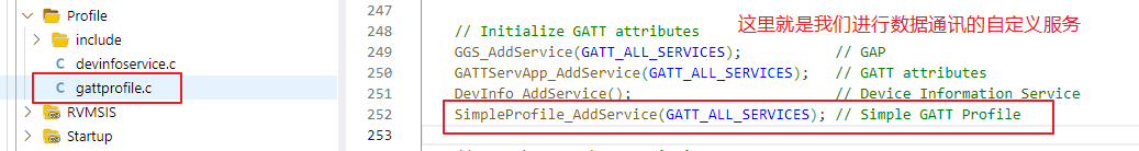 服务和特征值的定义是在工程中的 Profile 文件夹下面: