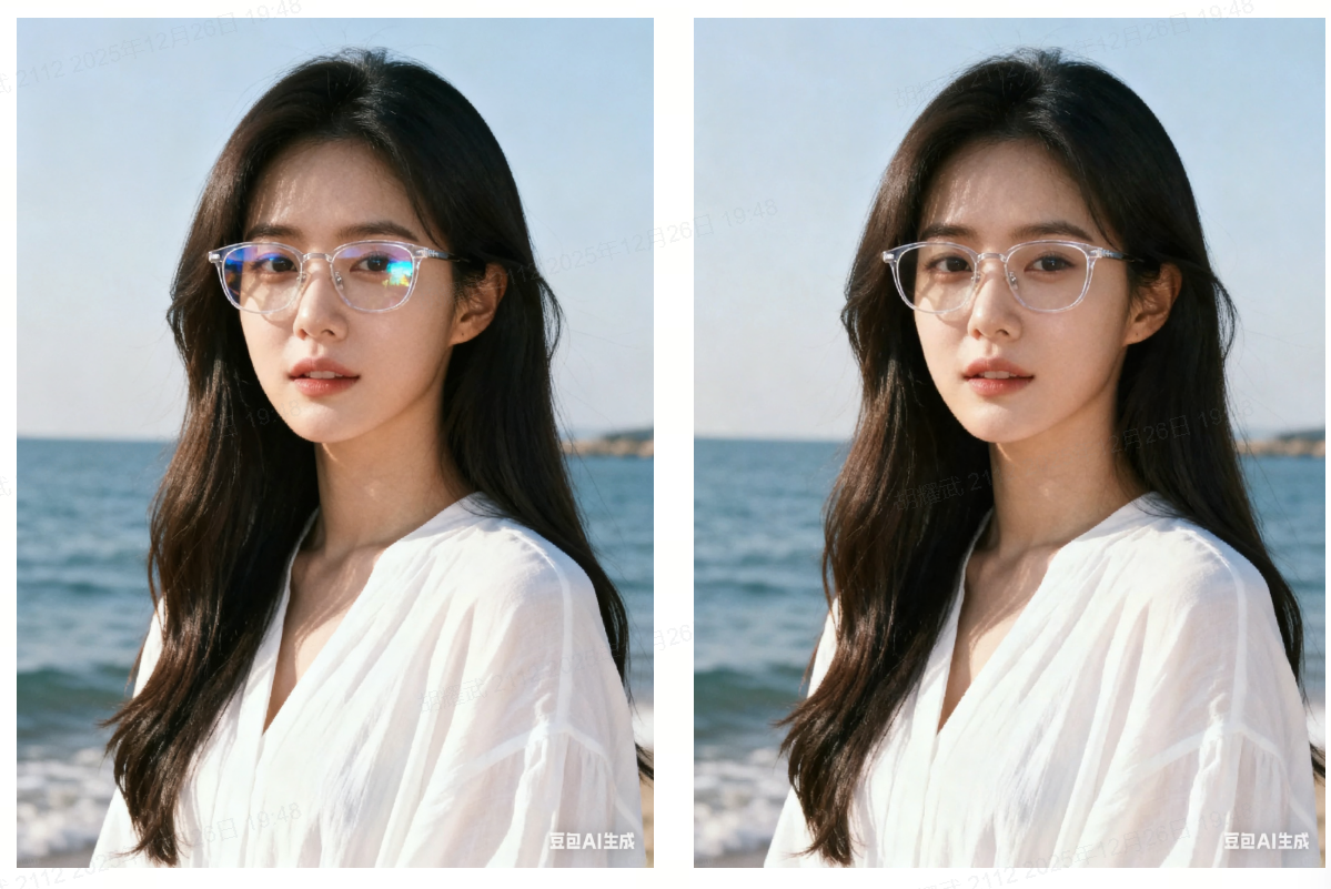 眼镜反光区域影响了五官的完整效果,受人诟病,而祛反光的需求也就由此而生。