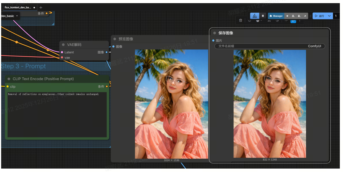 目前基于图像编辑的大模型,基本都可以实现眼镜祛反光效果,可用的大模型如:Banana,Flux kontext, Qwen image edit等;