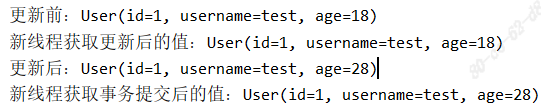 System.out.println("新线程获取事务提交后的值:" + user);