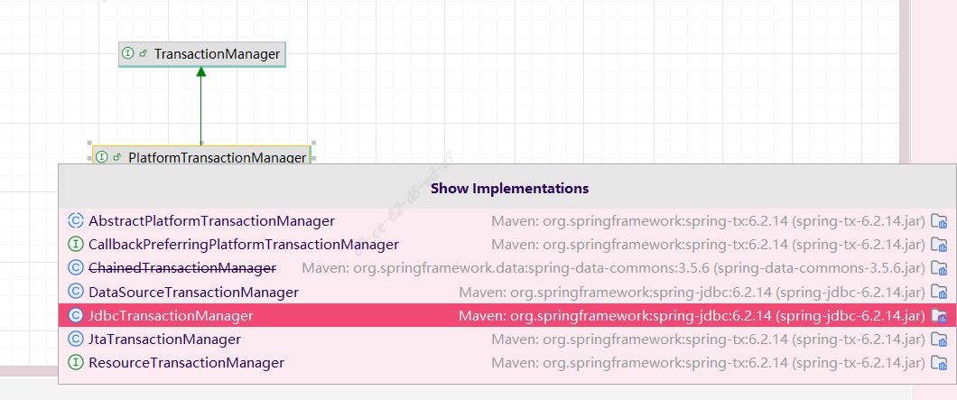 PlatformTransactionManager的实现是JdbcTransactionManager,参考DataSourceTransactionManagerAutoConfiguration自动装配类。如果引入了其他事务框架,如spring-boot-starter-data-jpa,那么PlatformTransactionManager实现会是JpaTransactionManager,可以参考HibernateJpaAutoConfiguration自动装配类。不管是JdbcTransactionManager还是JpaTransactionManager在开启事务时做的相关操作都是类似的,都是从数据源中获取到一个新的Connection后将其自动提交设置为false。