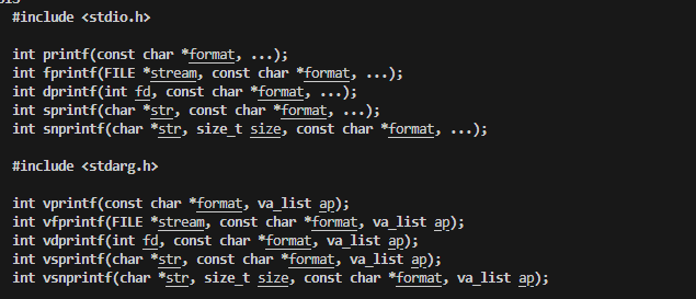 format:包含格式说明符的字符串,它定义了后续参数的输出格式,例: %d,%s