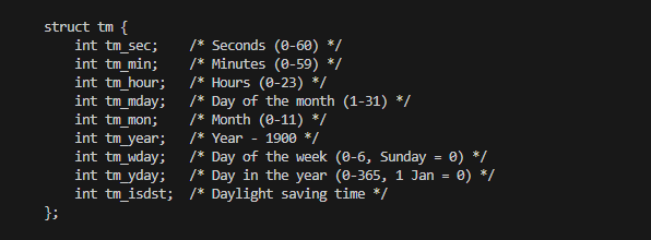 struct tm*ctime=localtime(&t);//将时间戳转为具体的年月日时分秒...存储在结构体