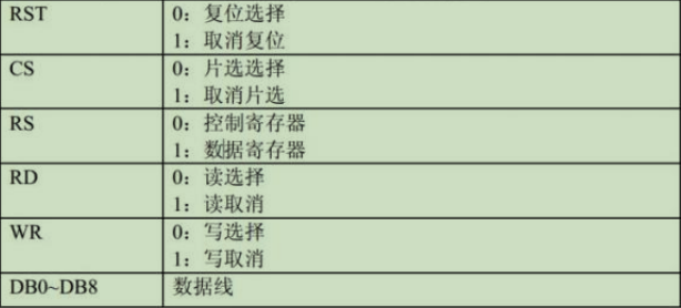 8080 接口有 5 条基本的控制线和多条数据线,数据线的数量主要看液晶屏使用的是几位模式,有8根、9根、16根、18根四种类型