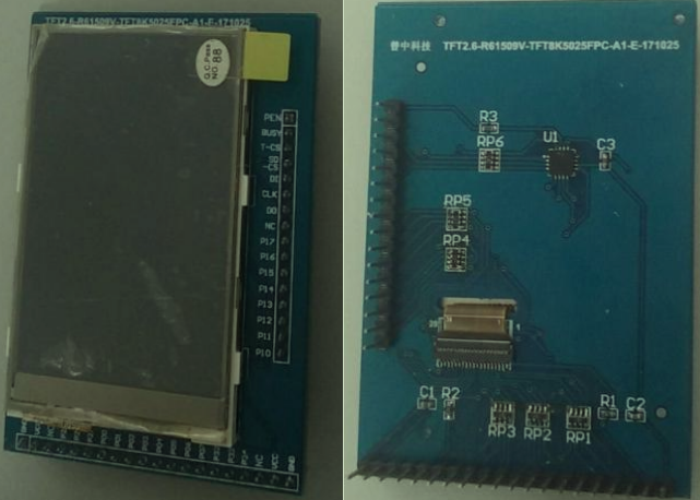 彩屏驱动芯片是哪一种,需要看彩屏版表面左上角或背面型号