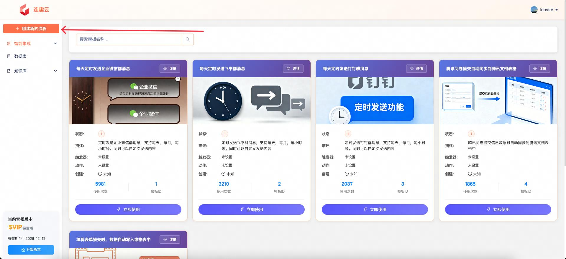 首先,登录连趣云控制台,在流程管理模块中点击"创建新流程",即可开启自动化流程的配置之旅。平台界面简洁直观,即使是初次使用,也能快速找到对应功能模块,轻松上手操作。