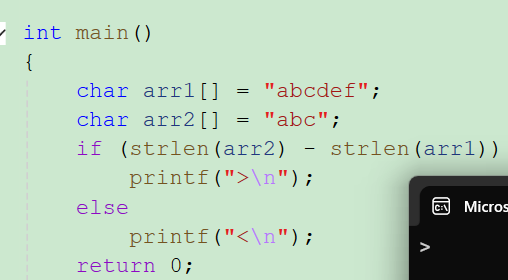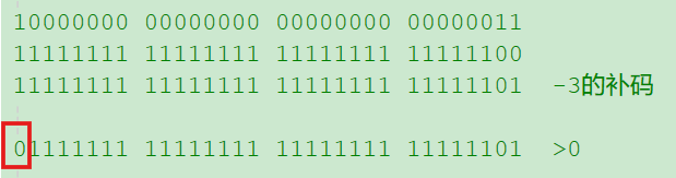 -3 在内存中的补码是这样的;但是减去的类型是size_t无符号整型,就没有符号位了,符号位变为0,变成了无符号整数,无符号整数它的原码反码补码相同,是一个很大的数字,结果就是>。