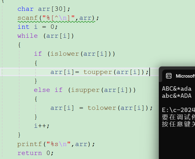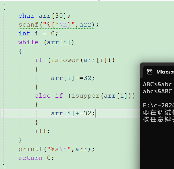 是小写字母就-=32;是大写字母+=32;应为大小写字母相差32;