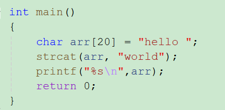 - strcat是追加字符串,是在目标数组的 \0 的位置开始追加字符串;