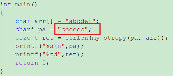 4、目标数组是可修改的空间;常量字符串是不能被修改的
