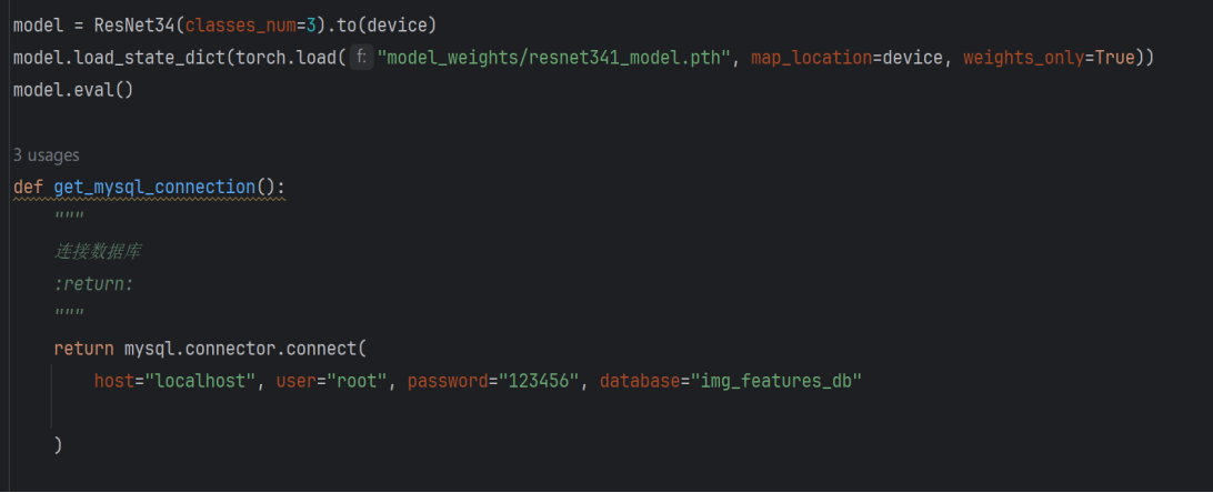 | 3.保存图片特征到特征库 | 1. 连接数据库 2. 创建表 3. 提取图片特征(加载预训练模型) 4. 插入图片特征数据到数据库 |