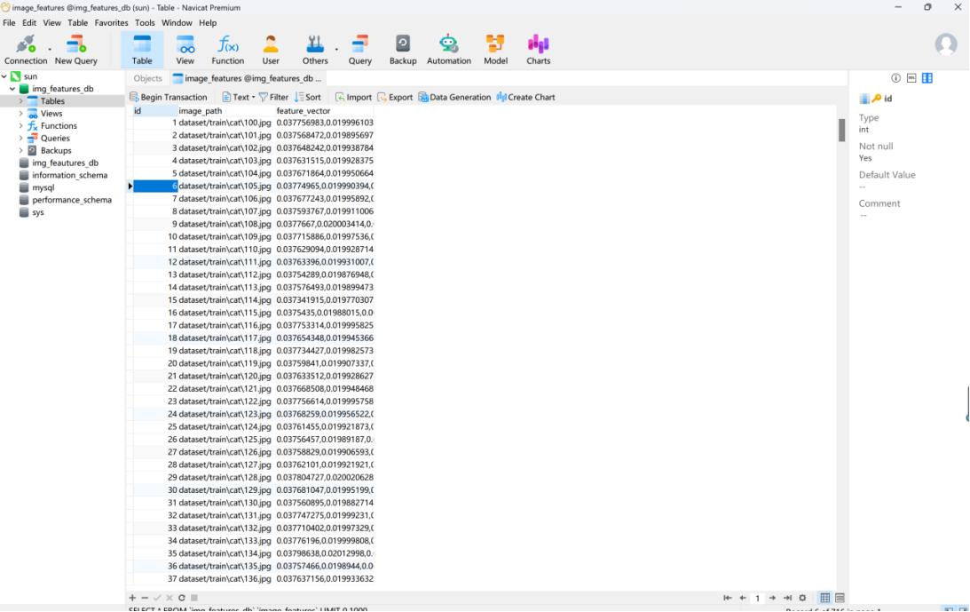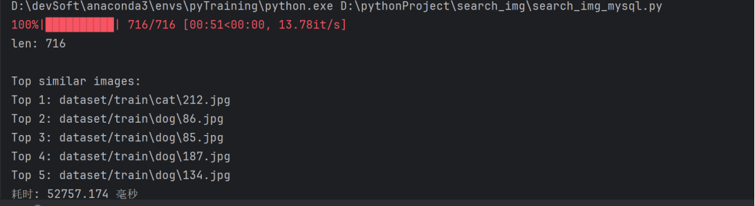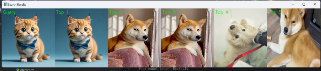 使用训练好的 ResNet34 模型提取图像的特征向量。对于输入图像,首先进行预处理,然后通过模型前向传播得到特征向量,并进行 L2 归一化处理,确保特征向量的可比性。创建 MySQL 数据库img_features_db,表image_features用于存储图像路径和特征向量;使用mysql - connector - python库连接数据库,将图像特征向量以文本形式插入数据库。用户上传查询图像后,提取其特征向量;在数据库中查询所有图像的特征向量,计算与查询特征向量的余弦相似度;根据相似度排序,返回前 5 个最相似的图像结果,并显示检索结果图像。