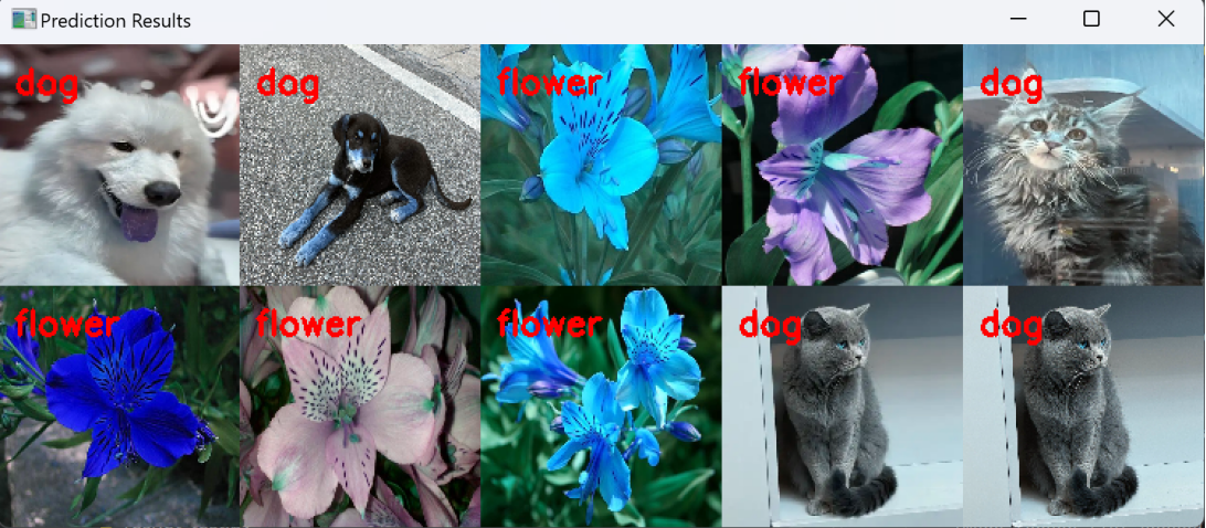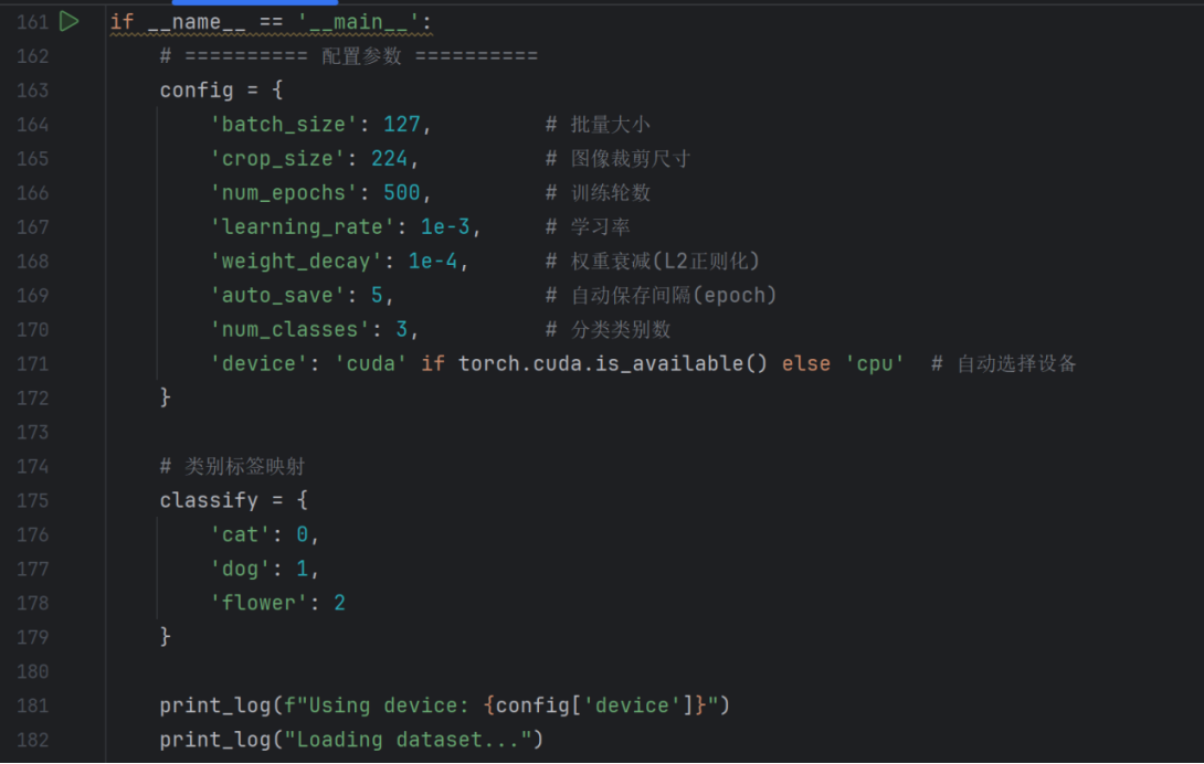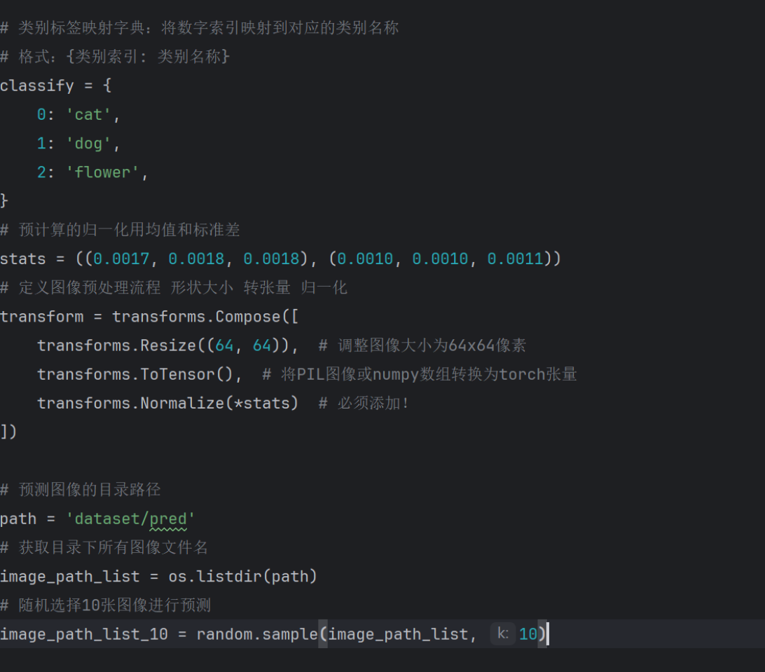 收集了包含猫、狗、花三个类别的图像数据集,分别存储在dataset/train和dataset/test目录下。训练集和测试集按 8:1:1 的比例划分,确保模型具有良好的泛化能力。使用 Python 脚本检查图像的完整性,删除损坏的图像,并对图像进行重命名,确保数据的规范性。将所有图像调整为 224x224 像素,以便输入到深度学习模型中;将图像从 BGR 格式转换为 RGB 格式,符合模型输入要求;计算数据集的均值和标准差,对图像进行标准化处理,加速模型收敛。
