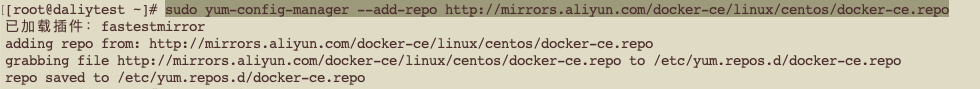 sudo yum-config-manager --add-repo http://mirrors.aliyun.com/docker-ce/linux/centos/docker-ce.repo