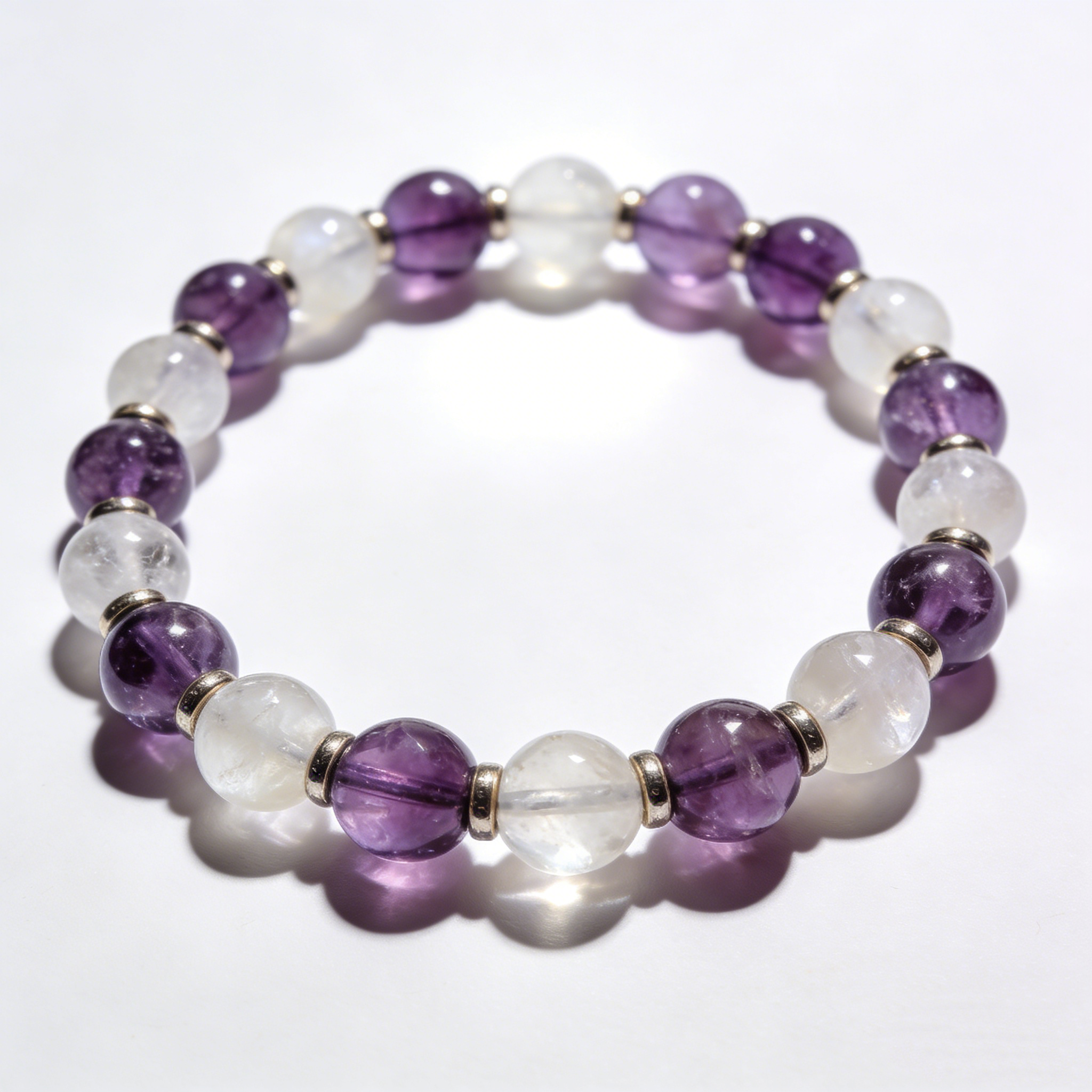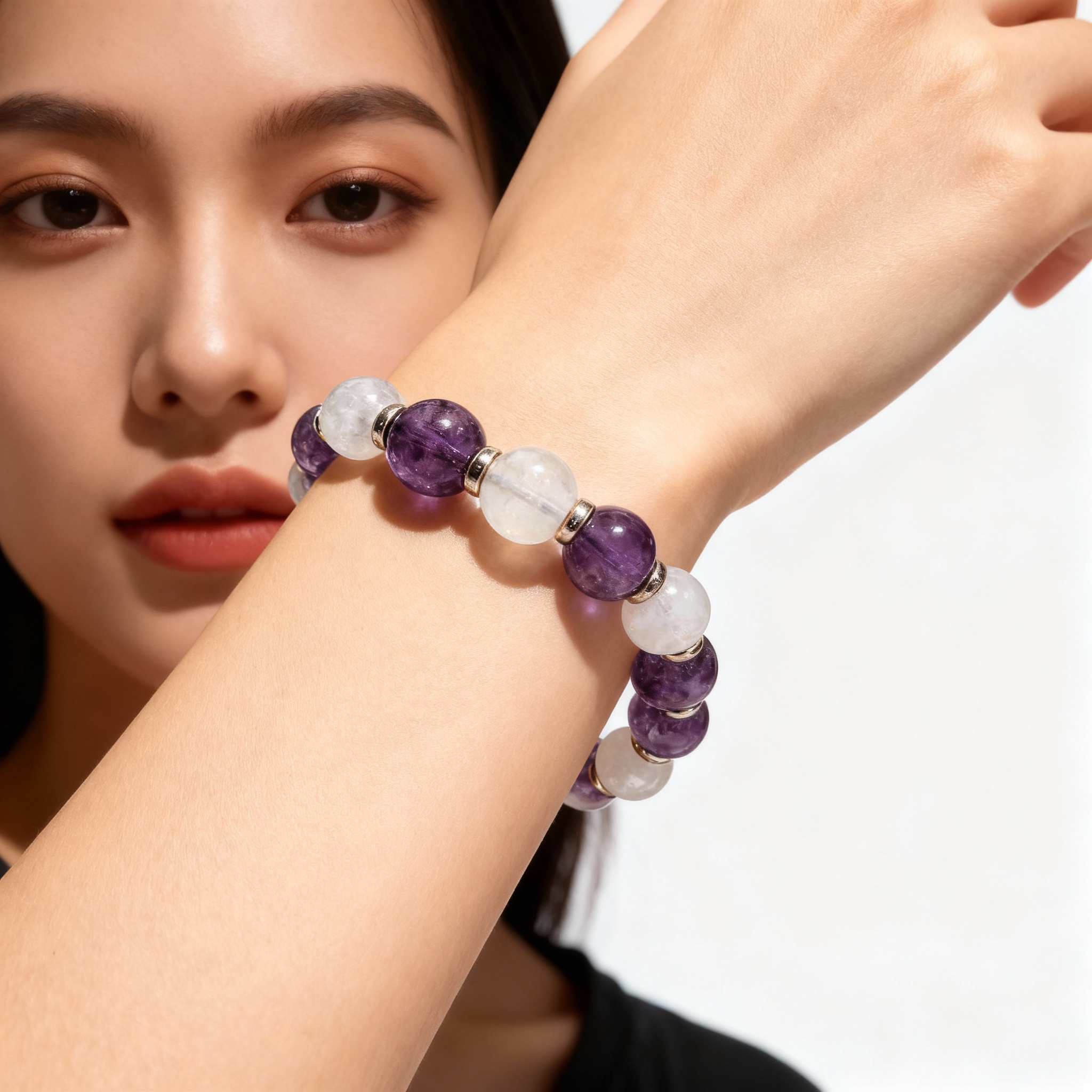 白紫相间的手串显得格外清新,珠子的质感通透,佩戴贴合度也很自然。不管是发朋友圈还是做产品主图,都能瞬间抓住客户的眼球~