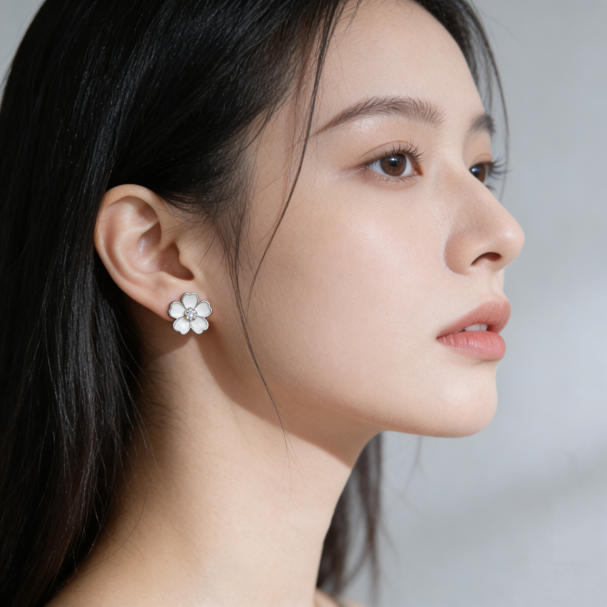 ◇效果:整体色调干净温柔,完美凸显了耳钉的精致。人物侧脸角度刚好能清晰看到耳钉的佩戴位置,光线柔和不刺眼!