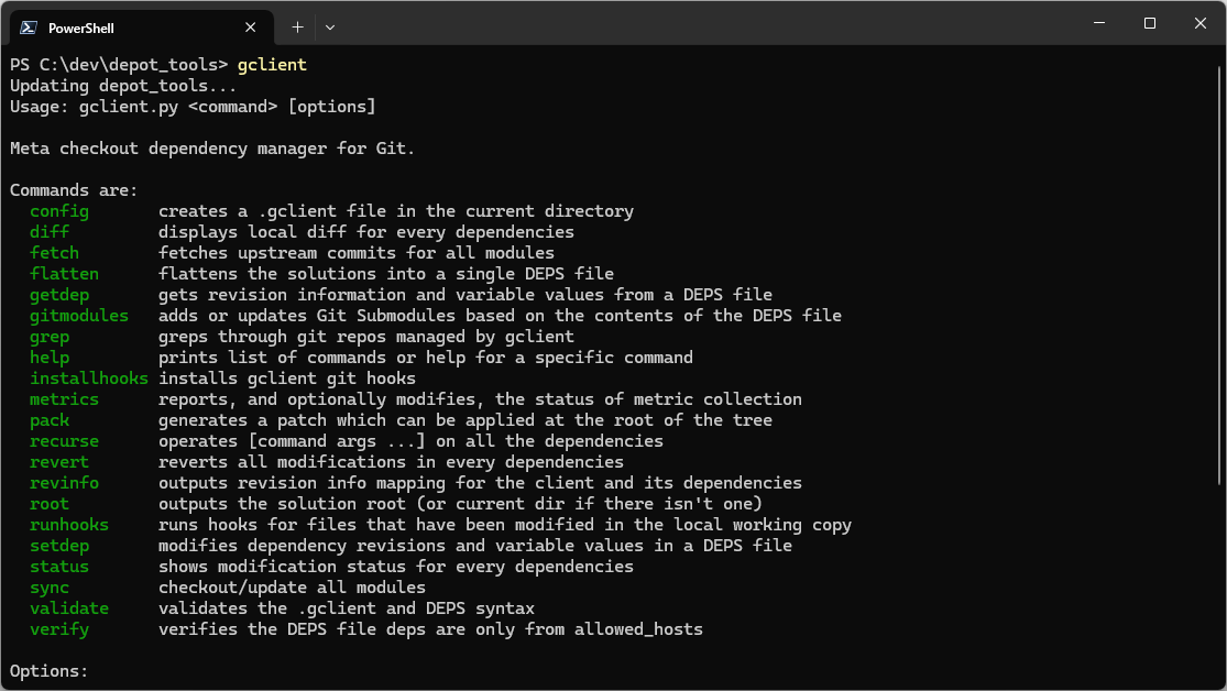 - 工具链验证:gclient 会验证 Git、Ninja 等工具的可用性