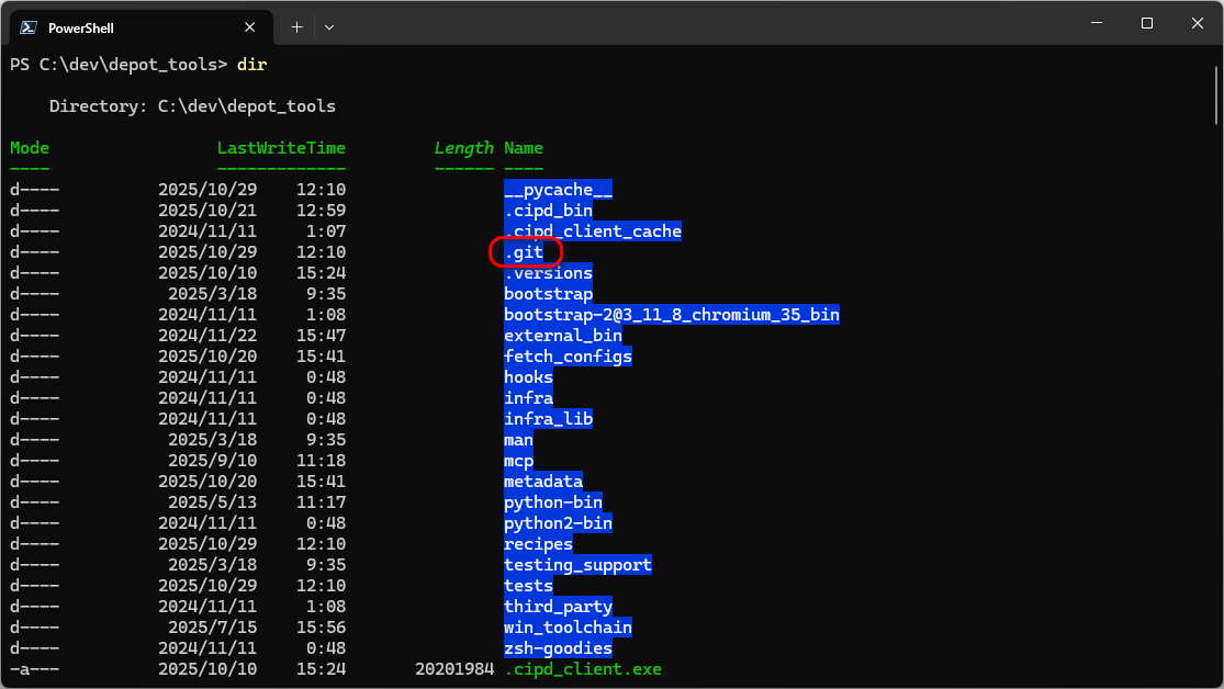 .git/- Git 仓库元数据(这很重要!)gclient和gclient.py- 主要工具脚本git-cl和git-cl.py- 代码审查工具ninja.exe和其他二进制工具python3或python3.exe- Python 可执行文件