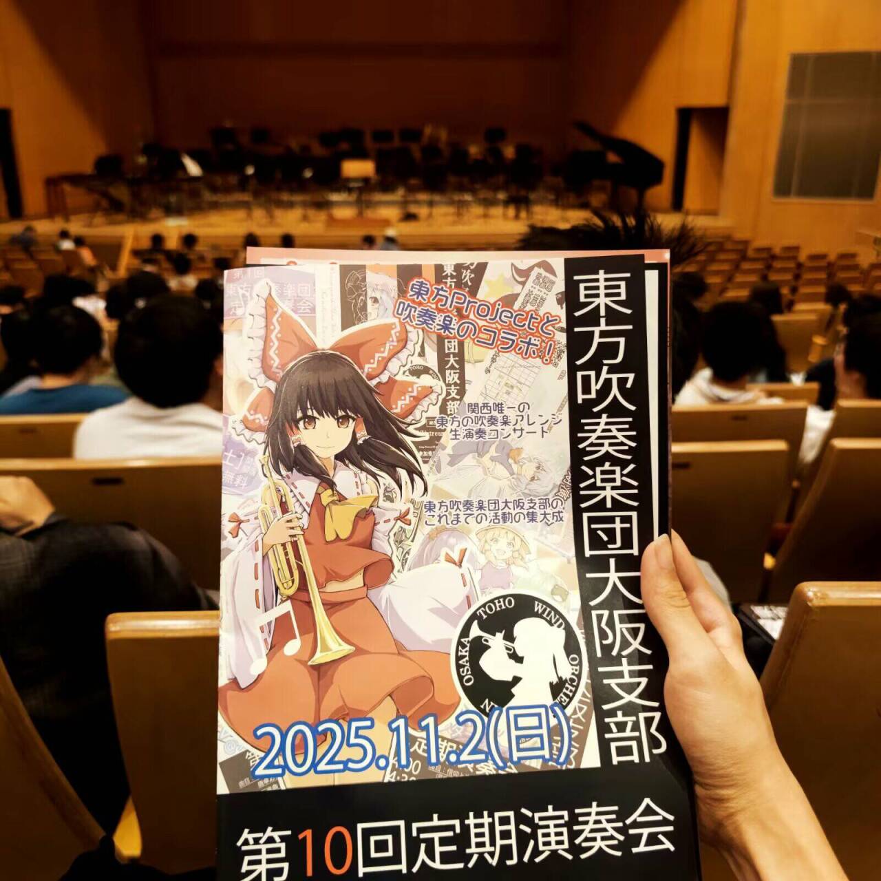 而东方吹奏乐团大阪支部的定期演奏会的演奏曲目则包括「感情の摩天楼」、「無何有の郷」等经典曲目的改编。其中「無何有の郷」改变的曲目主要由马林巴演奏,相比之前听过的交响乐版本又别有一番风味。在演出的最后观众按着节奏伴随着演奏鼓掌,感觉有那味道了~