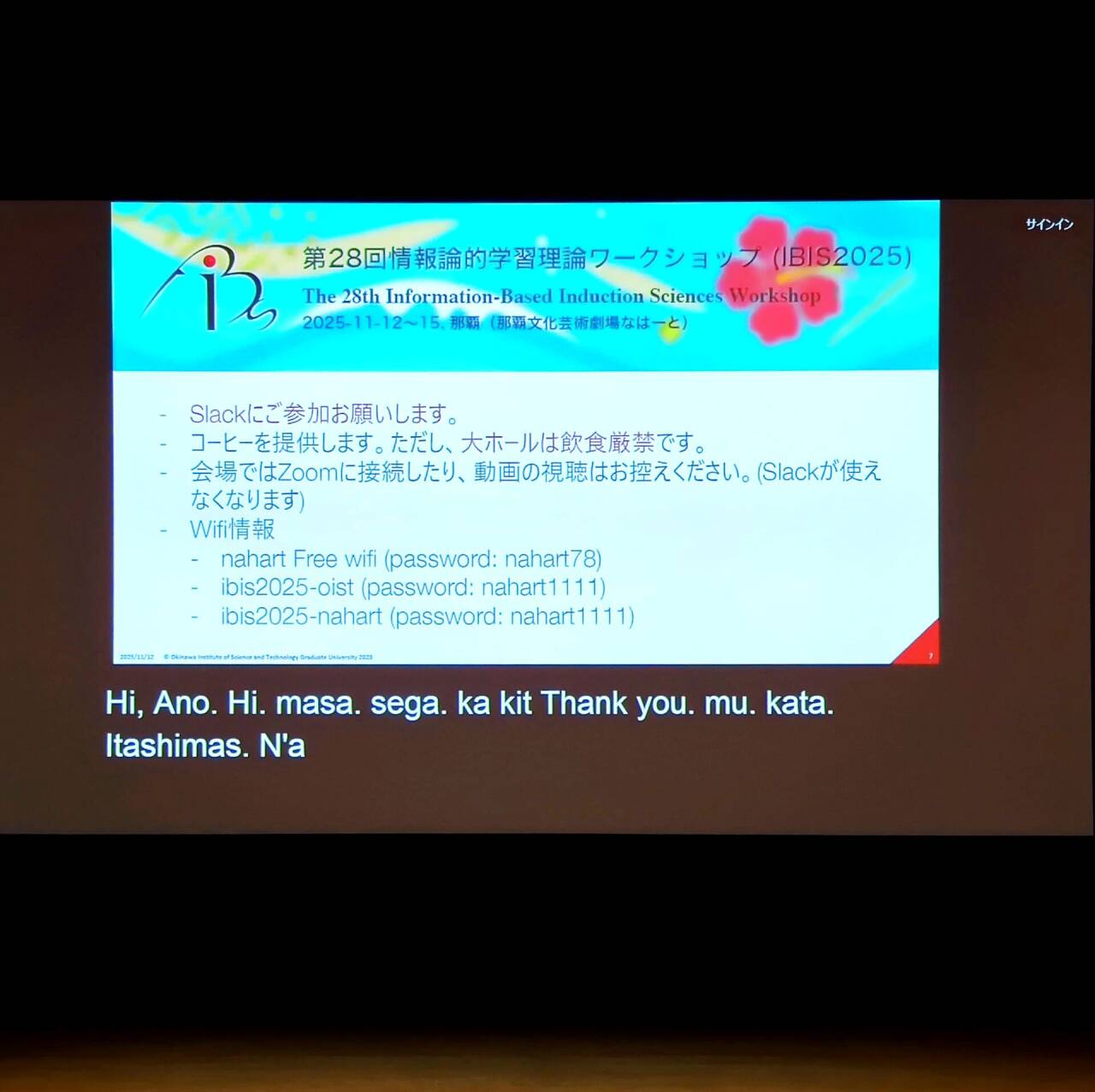 11月份去冲绳参加了IBIS2025,它是日本国内的一个以机器学习为主题的workshop。