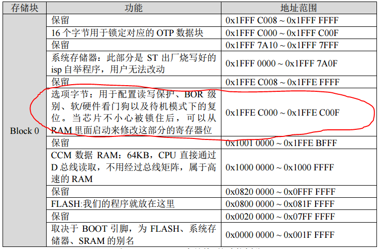 - 功能:保护主Flash中的程序代码不被通过调试接口(如JTAG/SWD)或从RAM启动的程序非法读取,是防止固件被抄袭的关键手段。