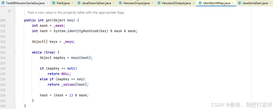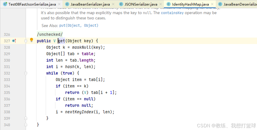 get 的实现, 也是通过 "==" 进行比较的, 进行引用的判断
