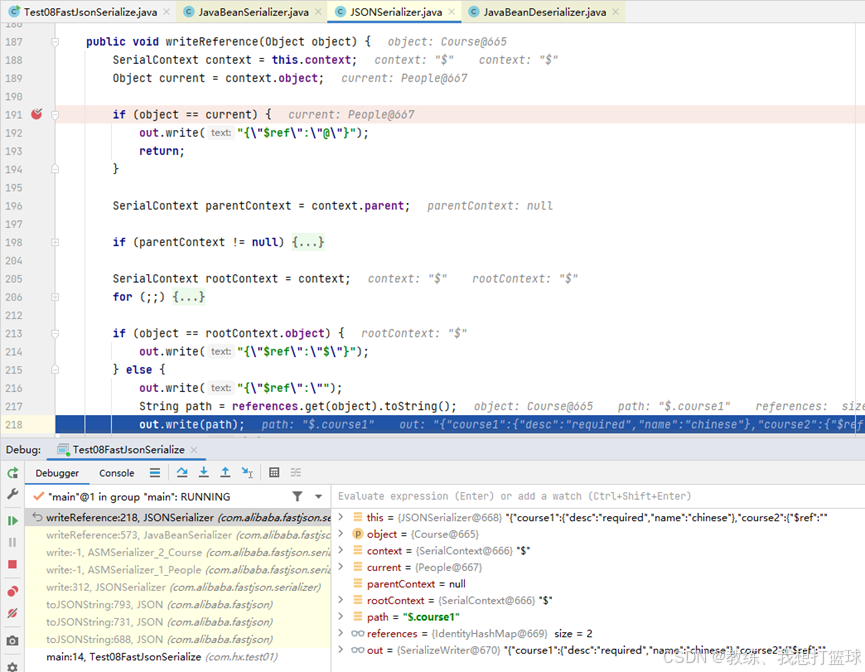 fastjson 这边 读取 ref 的地方在这里, ref 为 $.course1, 是一个 jsonpath