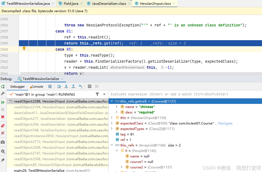 这是最终反序列化之后的对象, 可以看到 第二个 Course 对象貌似是被抛弃了