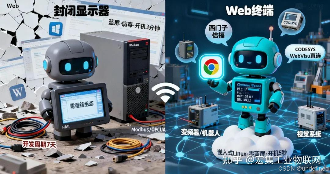 随着PLC和智能设备(如CODESYS PLC、西门子S7-1500)普遍内置Web服务器,HMI应能化身通用的Web终端,取代昂贵的工业PC或重复的组态工作。