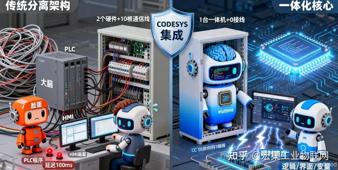 硬件整合与可靠性提升:例如,集成CODESYS Runtime,使HMI转变为PLC+HMI一体机。此举节省电柜空间,并消除了HMI与PLC间的物理通信接线,降低了故障点。