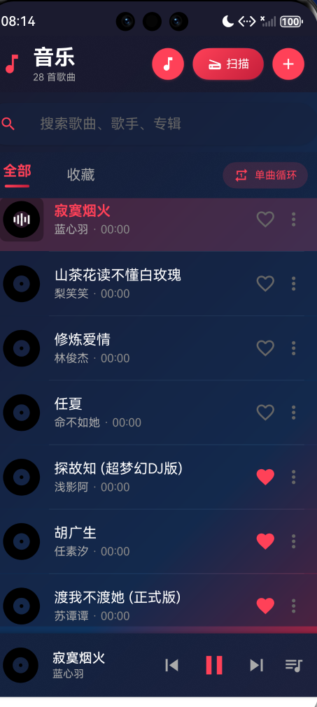 这个音乐播放器应用支持本地音乐扫描、播放控制、歌词显示、主题切换等核心功能,采用了现代化的架构设计和用户界面,为用户提供流畅的音乐播放体验。**
